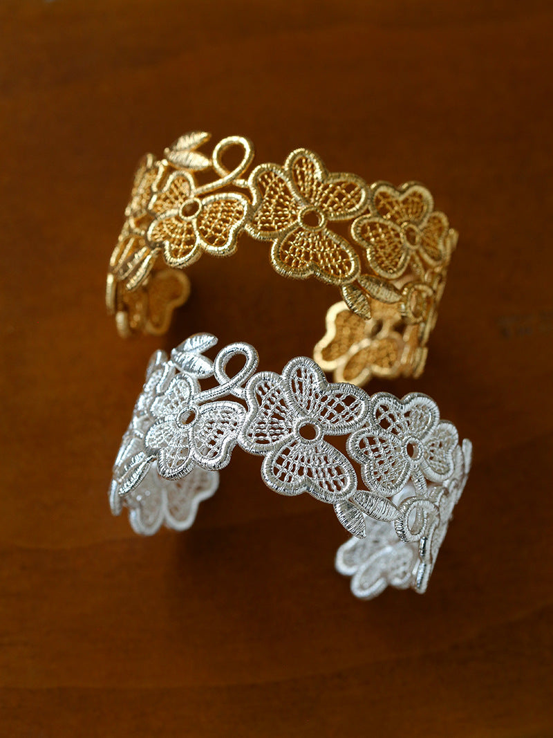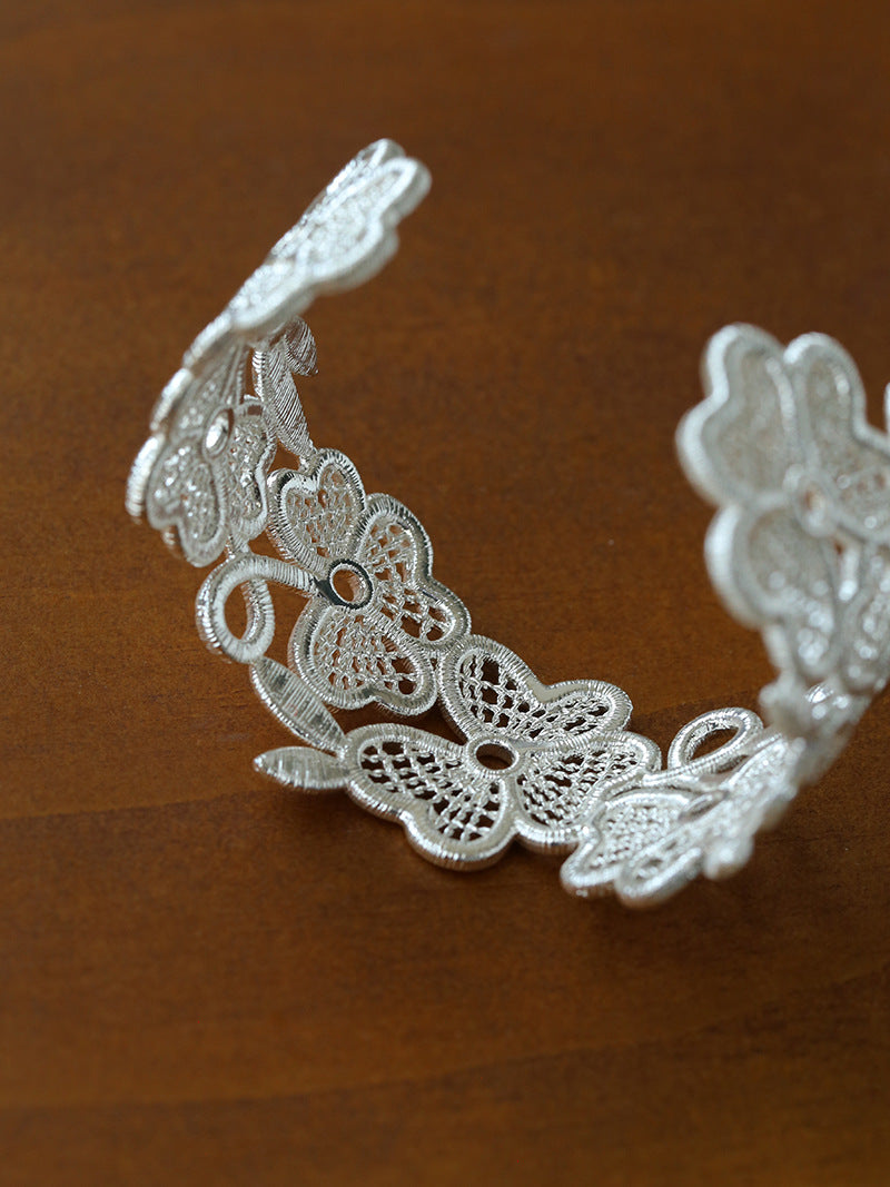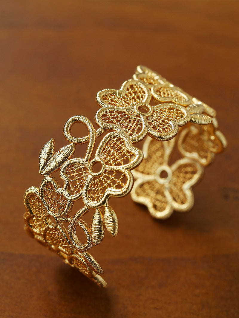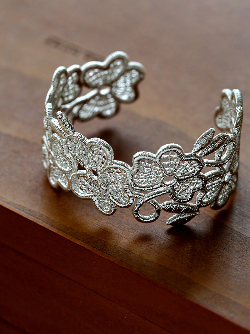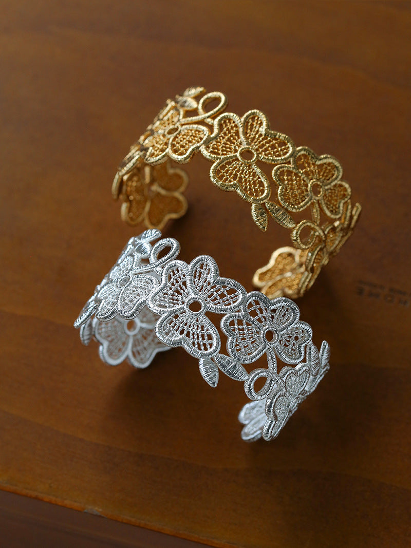Design: Open cuff style with lace-inspired hollow floral pattern